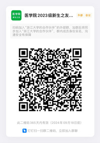 钉钉群直播(请医学院全体2023级新生之友以及医学院各单位负责新生之友工作的老师扫码入群)